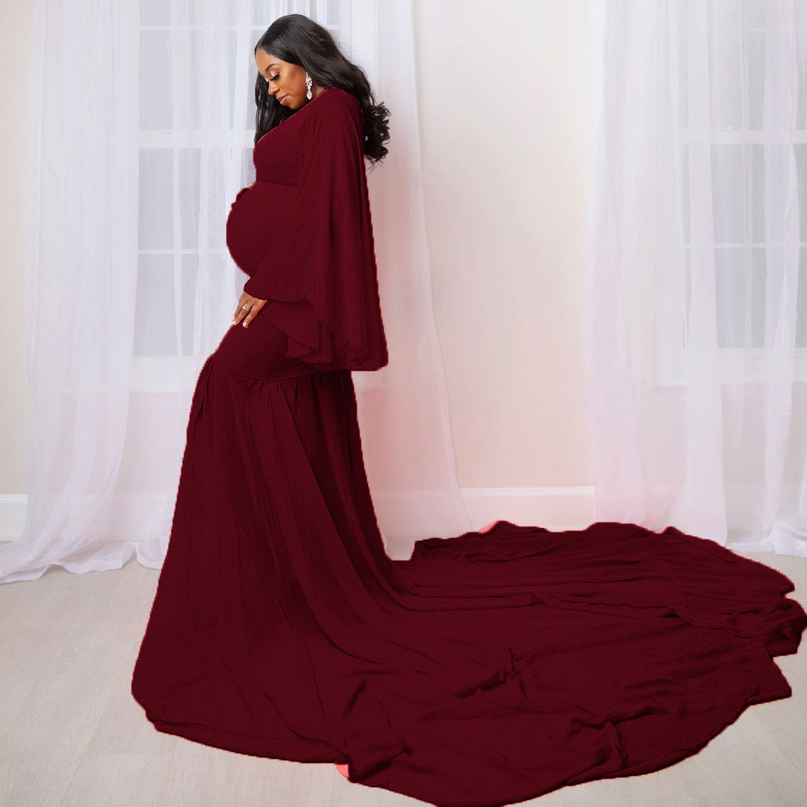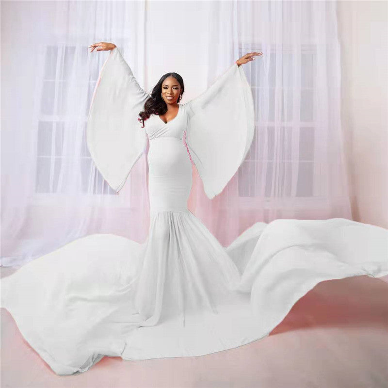 Women's Fashion Solid Color Maternity Photo Trailer Dress